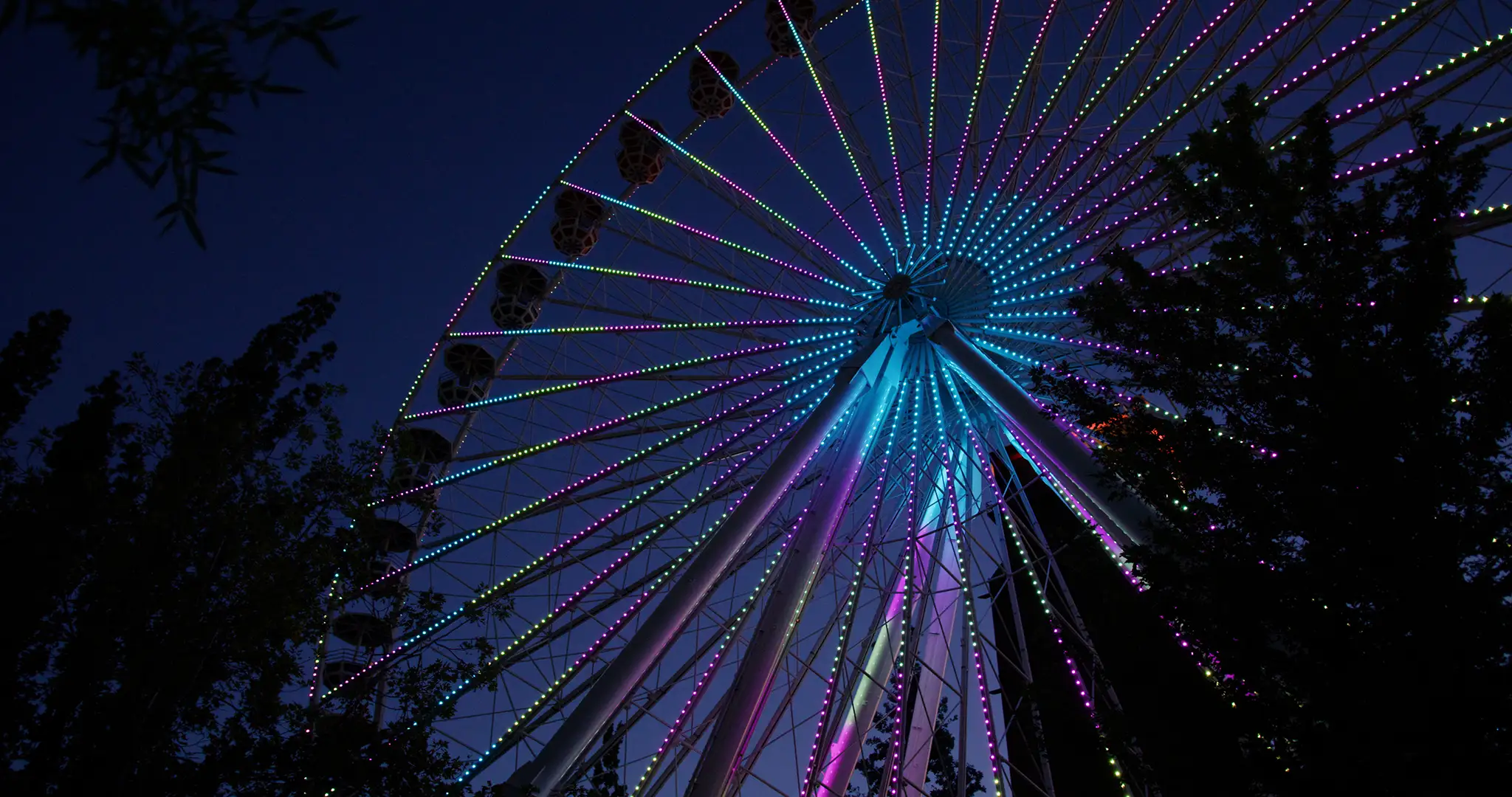 Engineered and installed a fully integrated lighting system across all 36 outward-facing rails, as well as the entire outer rim of the wheel.