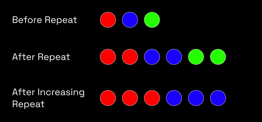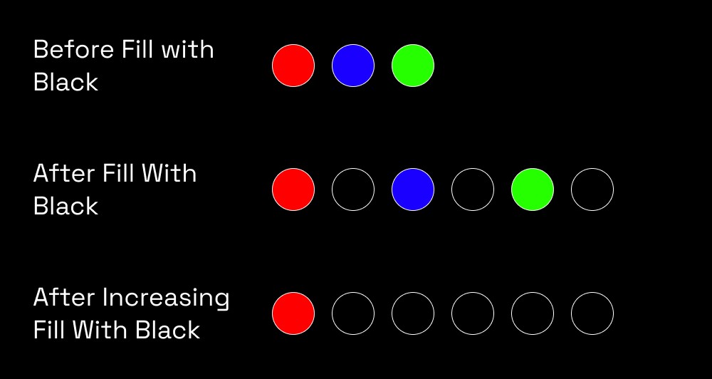Fade duplicates the number of lights per color, but each added light is darker than the last